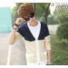 2015春季新款男式针织衫 拼色韩版纯棉薄款毛衣男 开衫 男