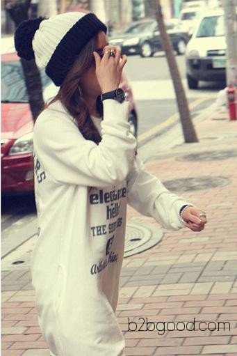 Q039110韩版宽松休闲抓毛卫衣棉长版圆领衫女式卫衣