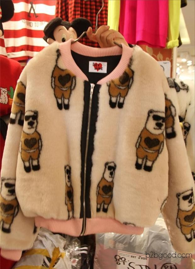 韩国东大门2014代购同款可爱卡通小熊毛茸夹棉外套 女式外套