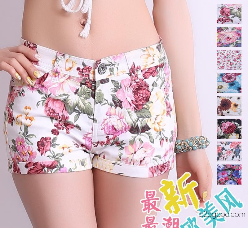 韩范潮碎花卷边裤子休闲 花裤热裤 夏季花裤子短裤 实拍