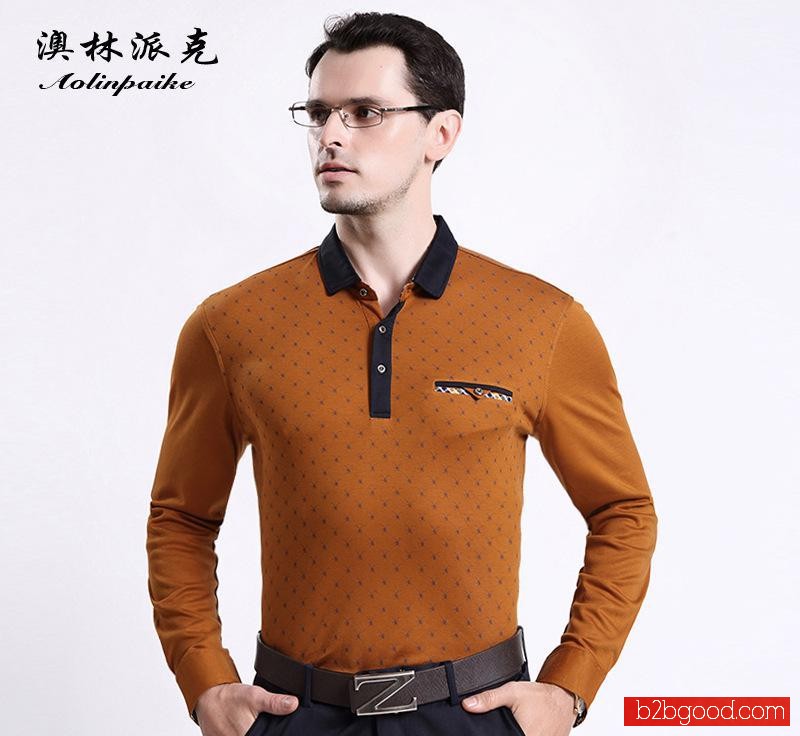 2014精品商务男装 时尚都市天牛印花男士T恤 套头翻领男士