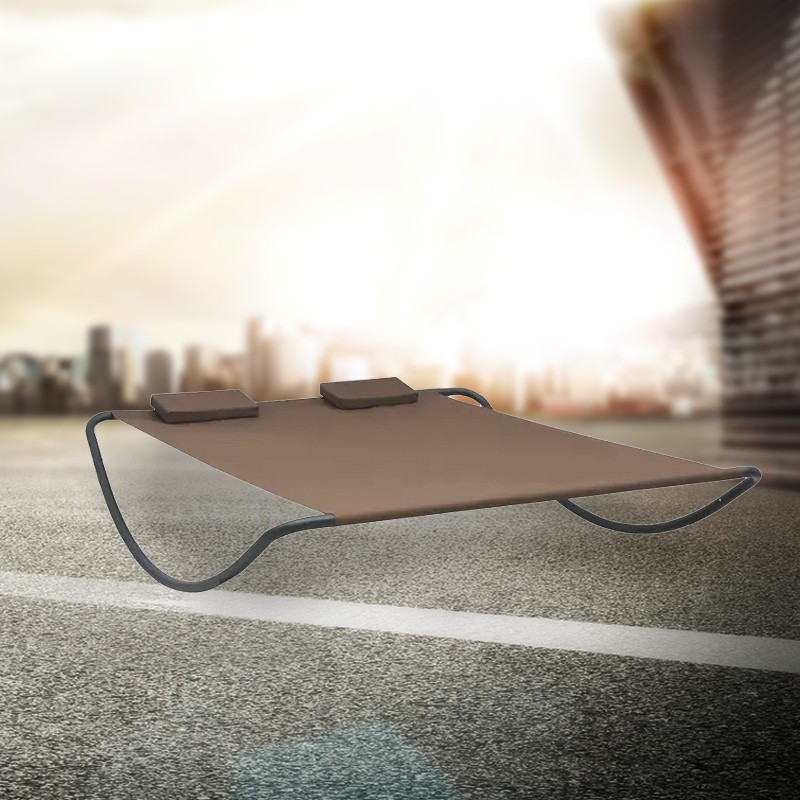 Outdoor Lounge Bed with Canopy and Headrest Pillow, Patio Sunbed Hammock Lounger, Brown