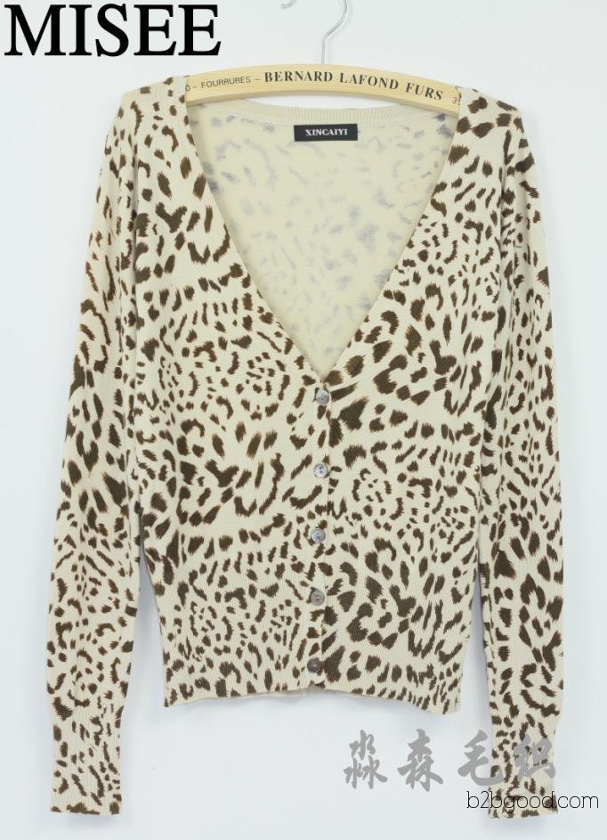 2014春秋新款女装针织衫长袖防晒3色豹点印花女针织衫开衫