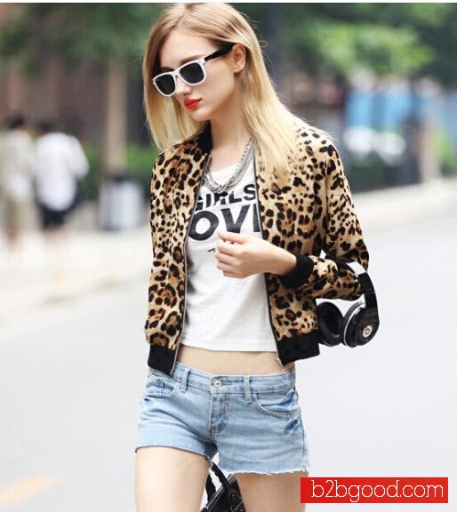 2014春秋新款韩版休闲百搭开衫大码潮夹克女装豹纹短款小外套