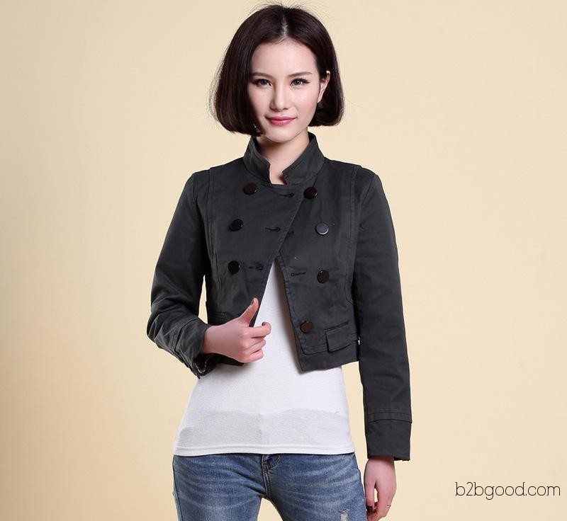 特价新款批发 黑色立领双排扣 高腰修身超短款复古小外套夹克女