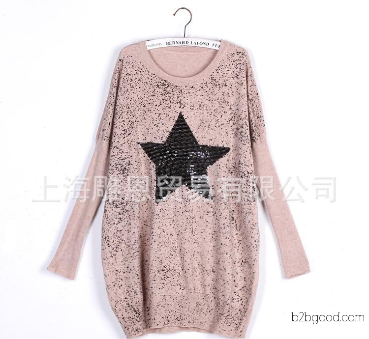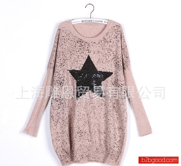 日韩女装批 2011秋装韩版蝙蝠袖宽松亮片五角星套头长袖针织