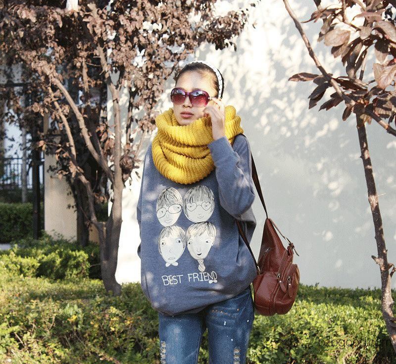 日韩女装 韩版女装 长袖T恤 打底衫 四个小人 蝙蝠T恤
