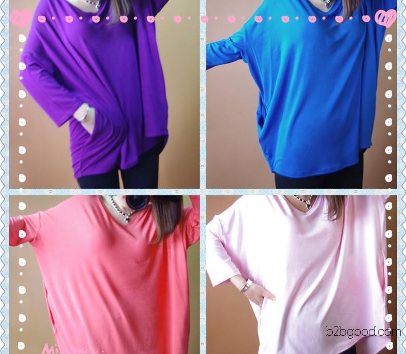 韩国代购款 V领 八分袖 净版 女士 蝙蝠衫 M0311