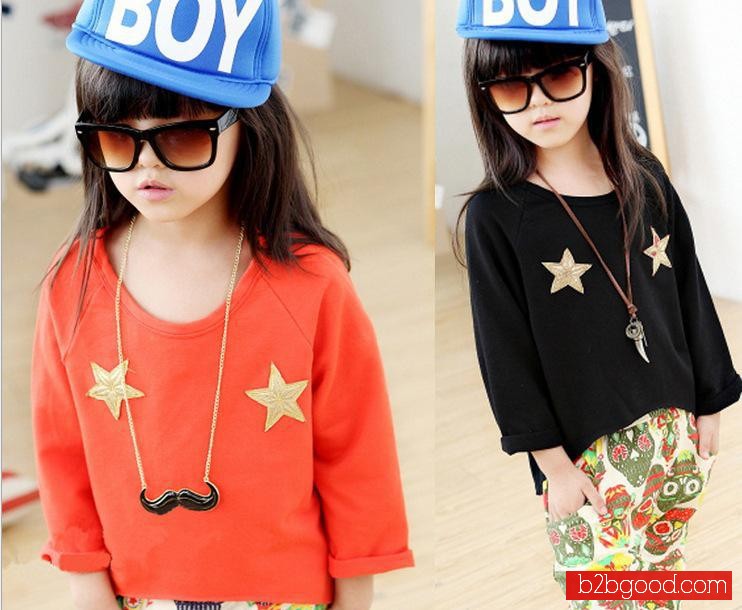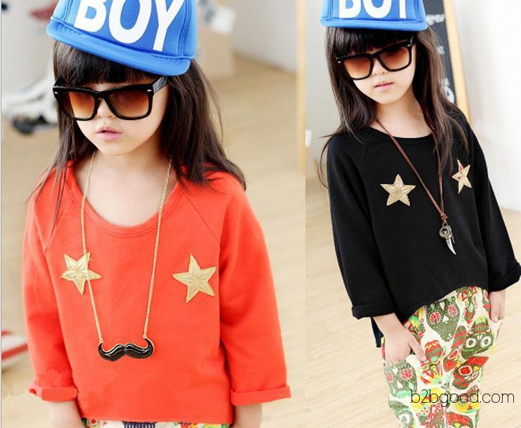 2014韩版儿童新款T恤 女童印花五角星蝙蝠衫 韩版长袖T恤