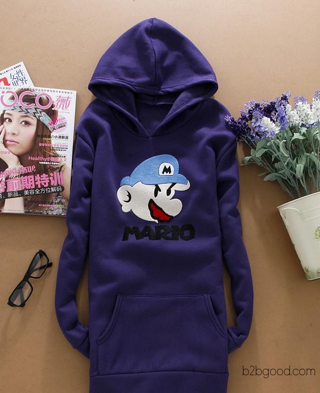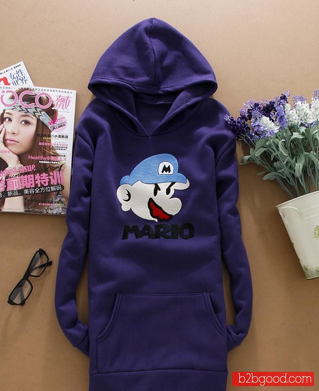 2014秋冬女式卫衣批发 时尚长款 连帽女装卫衣