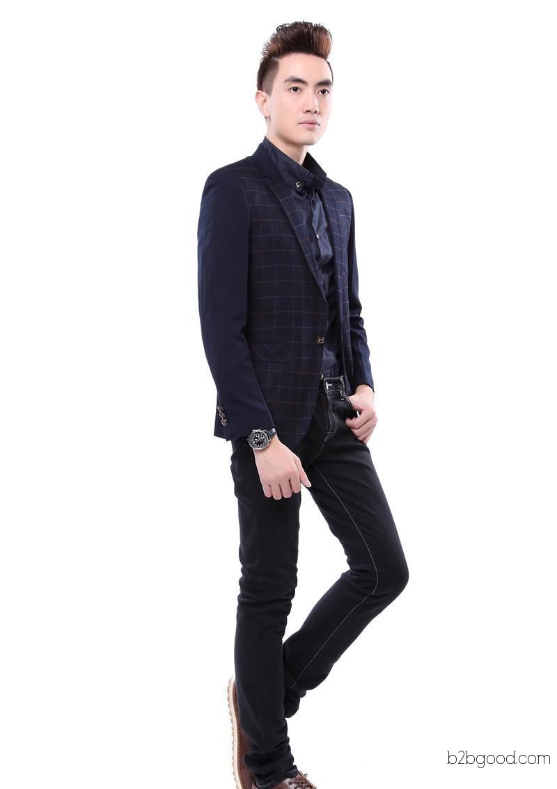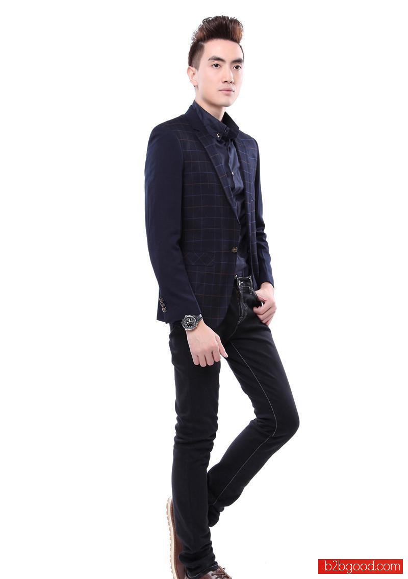 长袖休闲西装深蓝色拼接西装韩版修身男式休闲西装外套 厂家批发