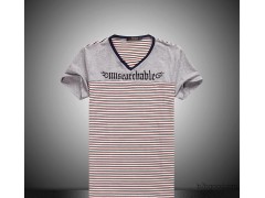 2015夏季新款 男式短袖t恤男 韩版男装体恤 V领条纹拼接