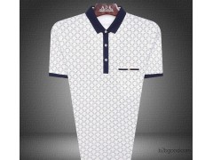 中年男式短袖T恤爆款新拼色领T恤翻领碎 花衫清爽时尚潮全棉体