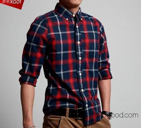 2013 جديد الشتاء أزياء الرجال القميص منقوشة قميص طويل الأكمام الرملي