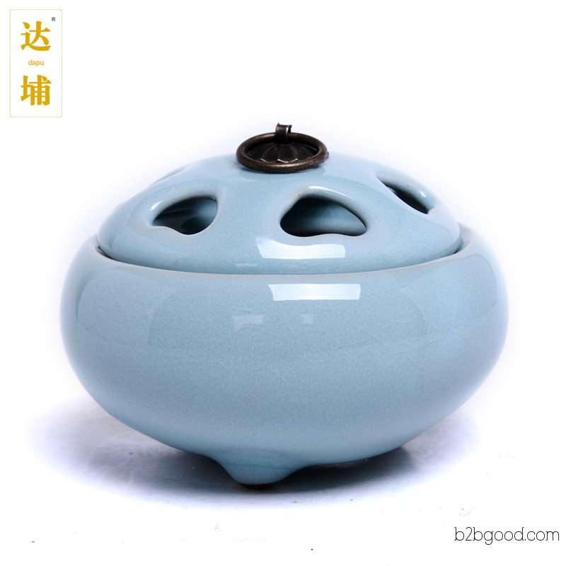 厂家直销 吉祥香薰炉陶瓷哥窑汝窑龙泉青瓷盘香香炉 复古铁环纯铜焚香吉祥如意佛具家居用品特价 哥窑粉青