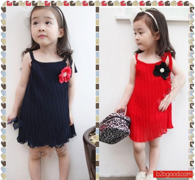 اطفال بنات 2014 الصيف تنورة طفل ملابس الأطفال الكورية تنورة مطوي الشيفون الكتف الأشرطة