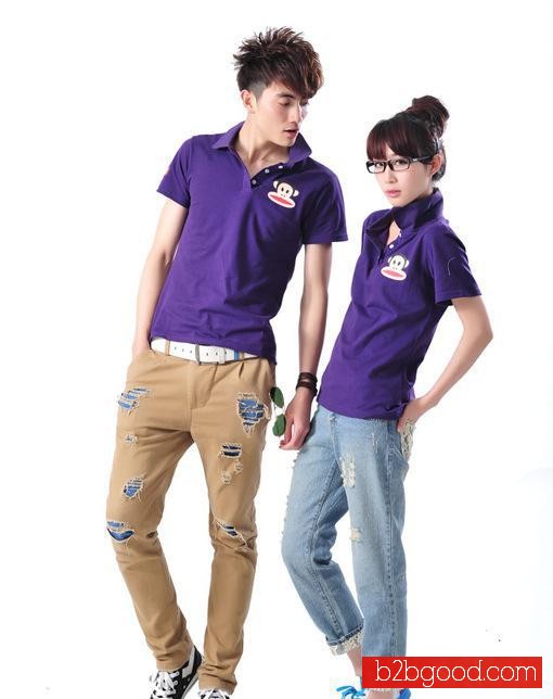 2013 حارّ الكورية الأزواج طية صدر السترة لون اللباس زوجين تي شيرت قصيرة الأكمام وزرة فئة مخصصة