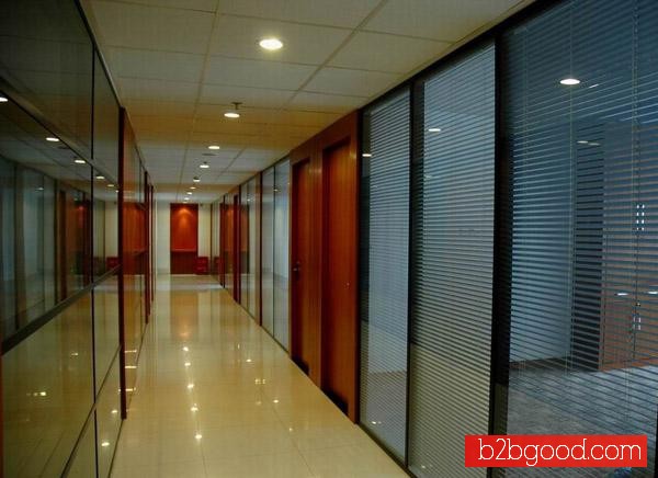 走廊双玻加百叶(炭灰色) 玻璃隔断 防火玻璃隔断 办公隔断 玻璃隔断厂家 防火隔断 高隔间厂家 成品高隔