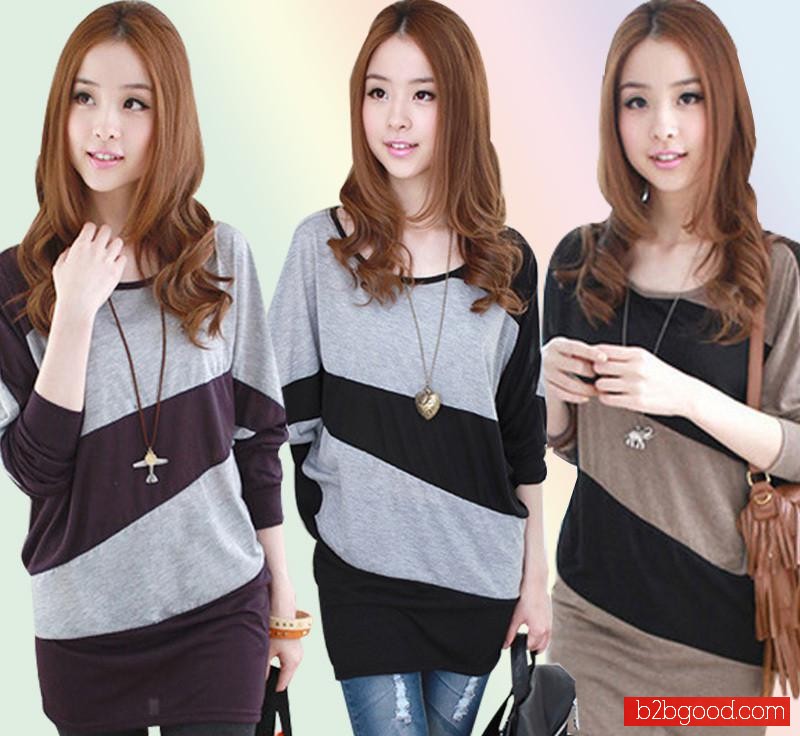 2014春装新品 韩版蝙蝠衫 时尚拼接撞色长袖T恤 宽松大码