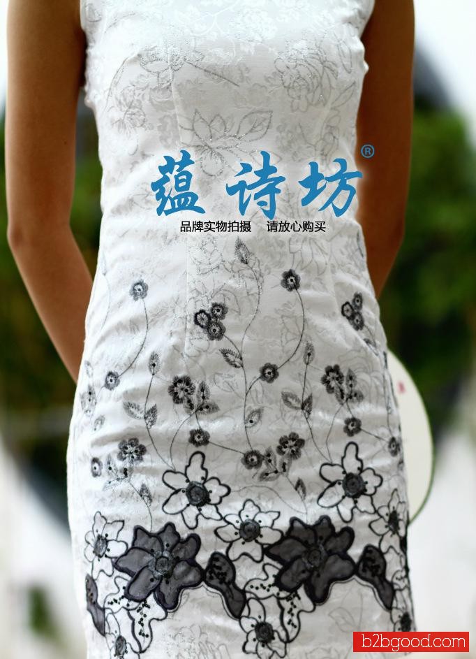 الجملة الصينية الساخنة الفضة قماش من الذهب الخرز والتطريز اليدوية فقاعة كم شيونغسام 338