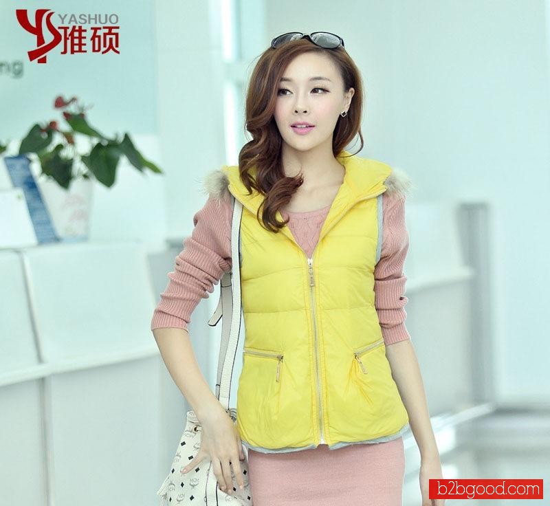2014秋装新品爆款韩版女装纯色连帽短款棉背心马甲