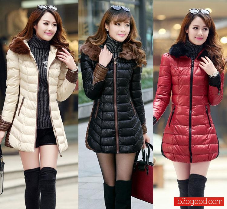 طويل إلى أسفل الملابس بو الجلود في مقنعين القطن مبطن سترة حجم العلامة التجارية النساء الشتاء في