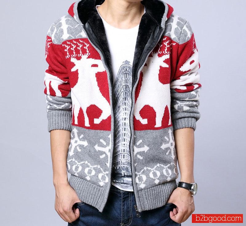 2014秋冬新款韩版男式毛衣 批发男装时尚潮男士连帽加绒加厚