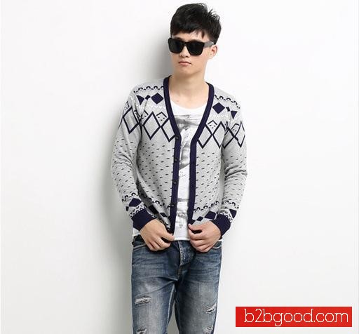 秋冬新款男装 双层男式针织衫 提花空气层开衫男 针织外套厚批
