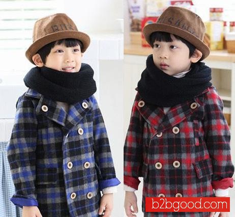 التجارة الخارجية الكورية ملابس الأطفال كل مباراة وينتر كلاسيك منقوشة معطف معطف مزدوجة بالجملة ب