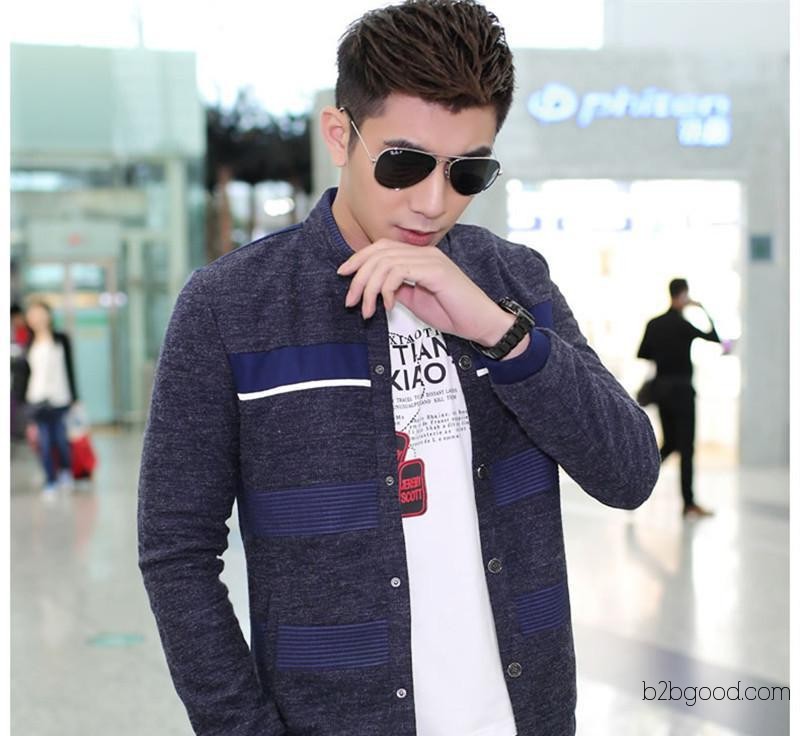 2014新款春装男式夹克 休闲立领时尚针织拼接夹克衫外套 男